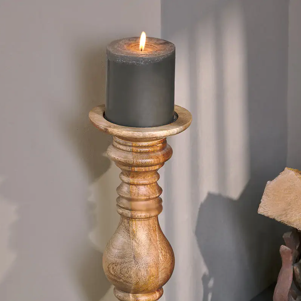 Dress your fireplace with these tall wooden candlestick holders. Each chunky wooden candle stick is hand turned by skilled artisans from sustainable mango wood. They look beautiful with a church candle on to pair with the Kibibi candlestick holder for a beautiful vignette.