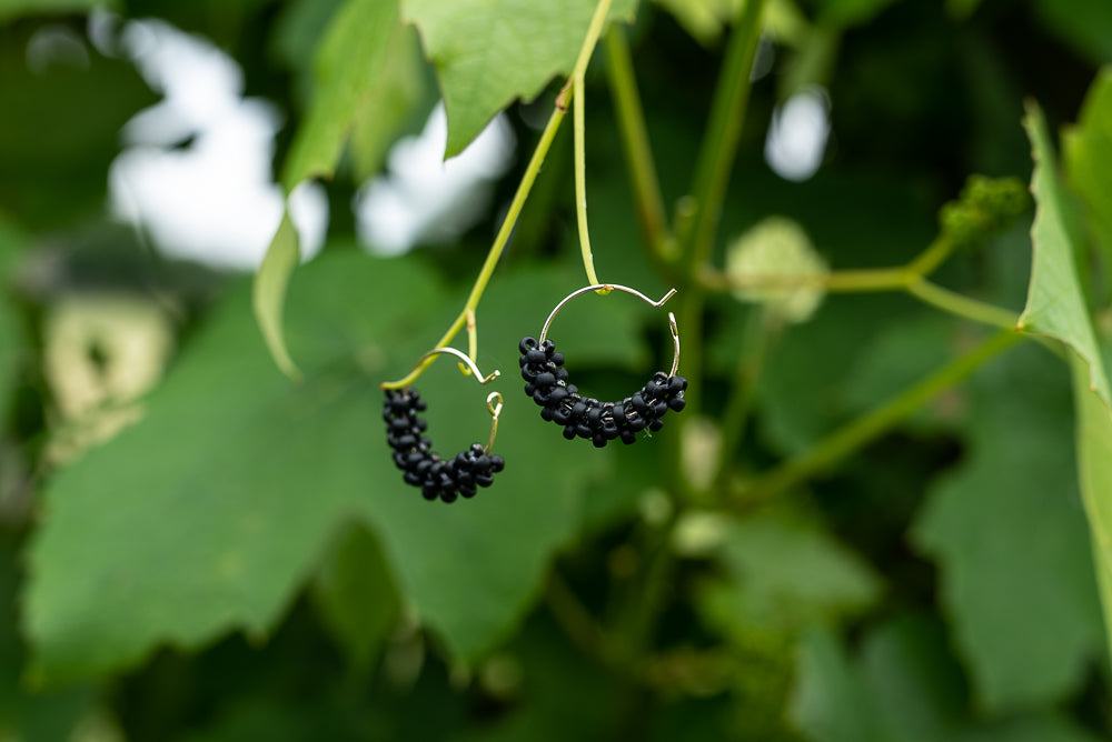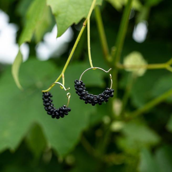 The hoops are 2cm in diameter. Size 8 beads. Available in white pearl, matte black and mauve.