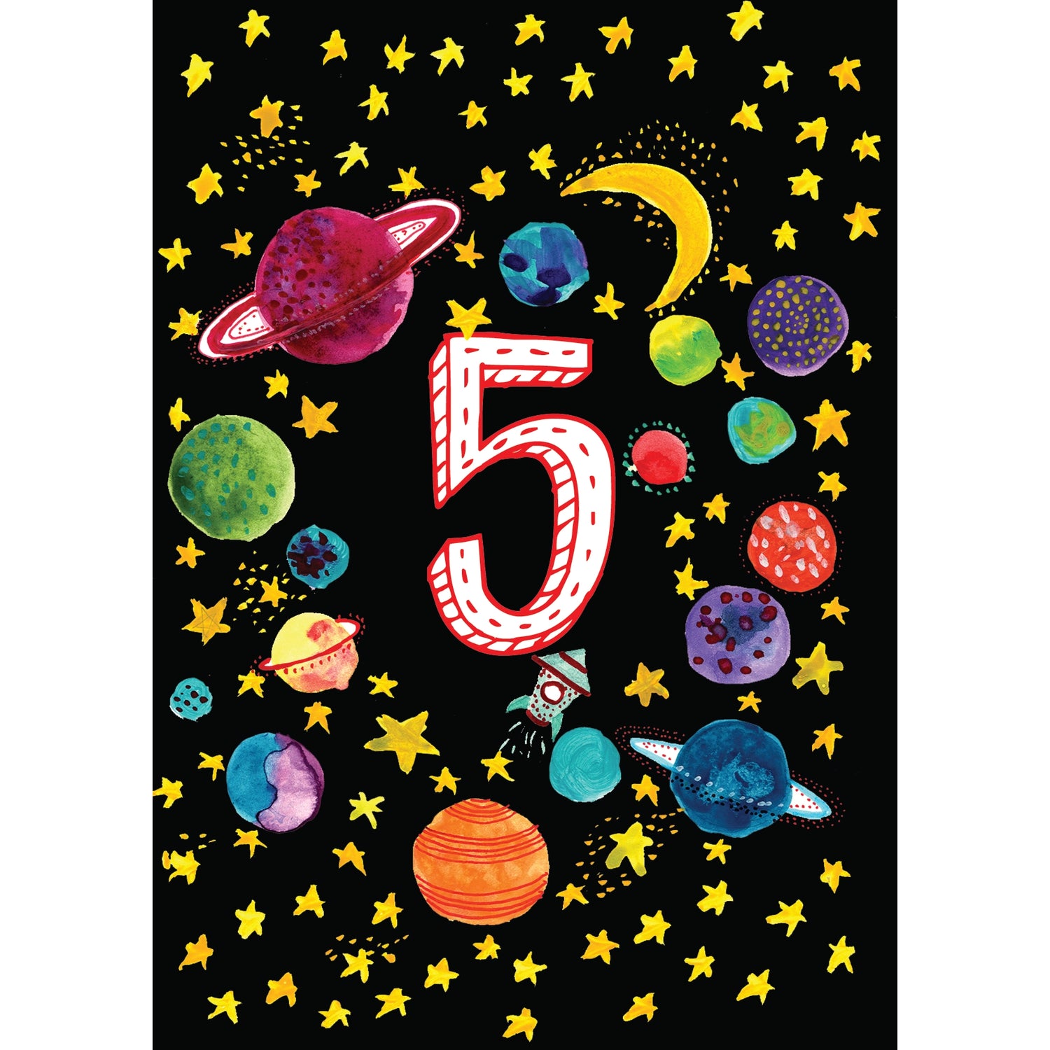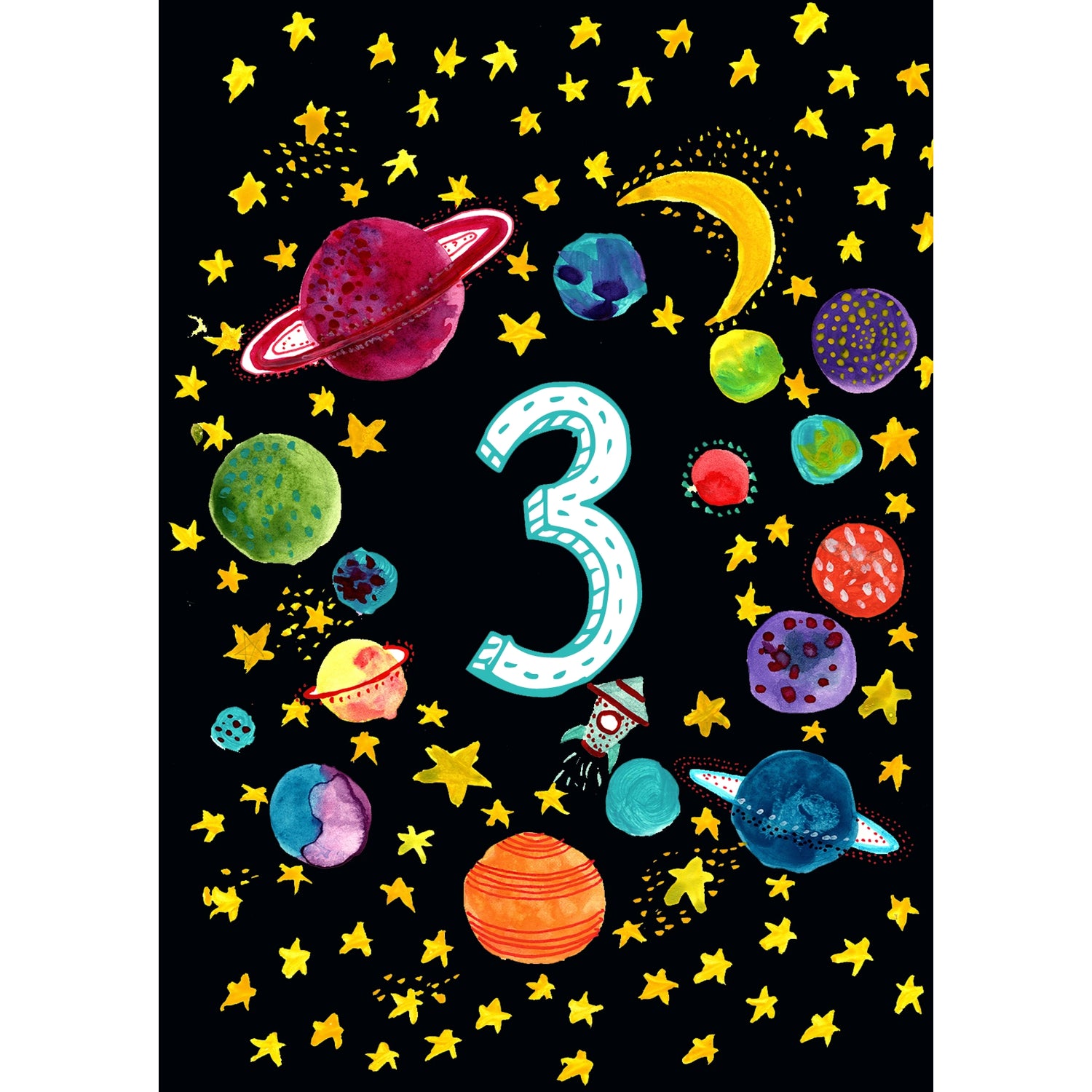 Happy Birthday Numbered Planets Greetings Card by Maria Zvaric