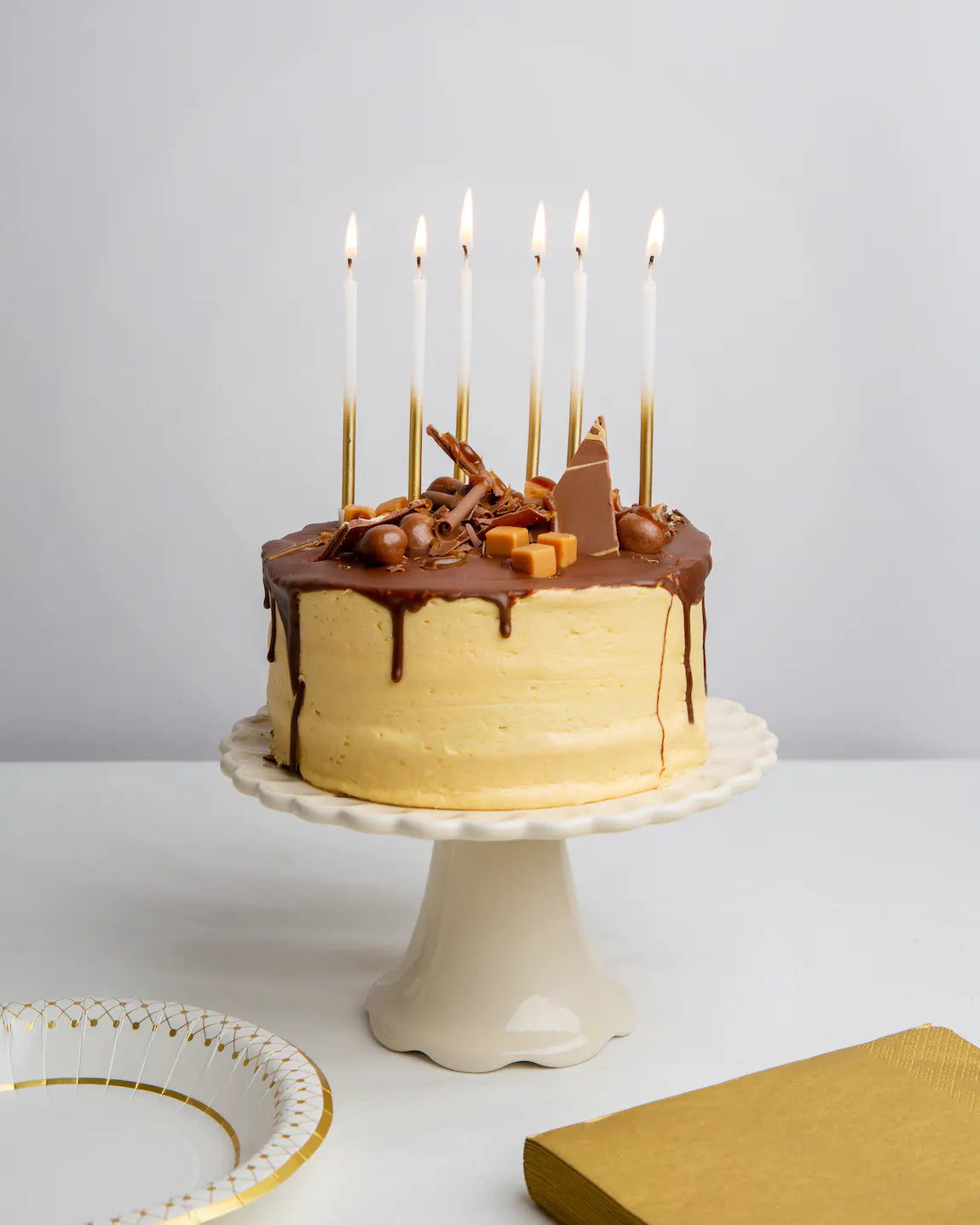 These cake candles are perfect for a birthday, gold party, nye party, wedding, or anniversary.