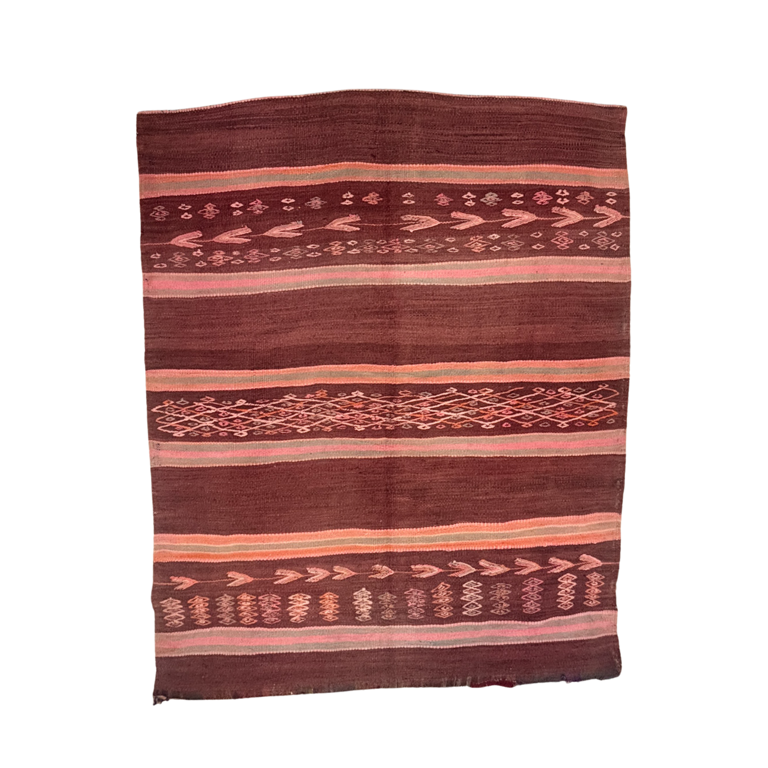 Vintage Moroccan Hanbel Rug – Kilim Style Flatweave in Terracotta & Rose