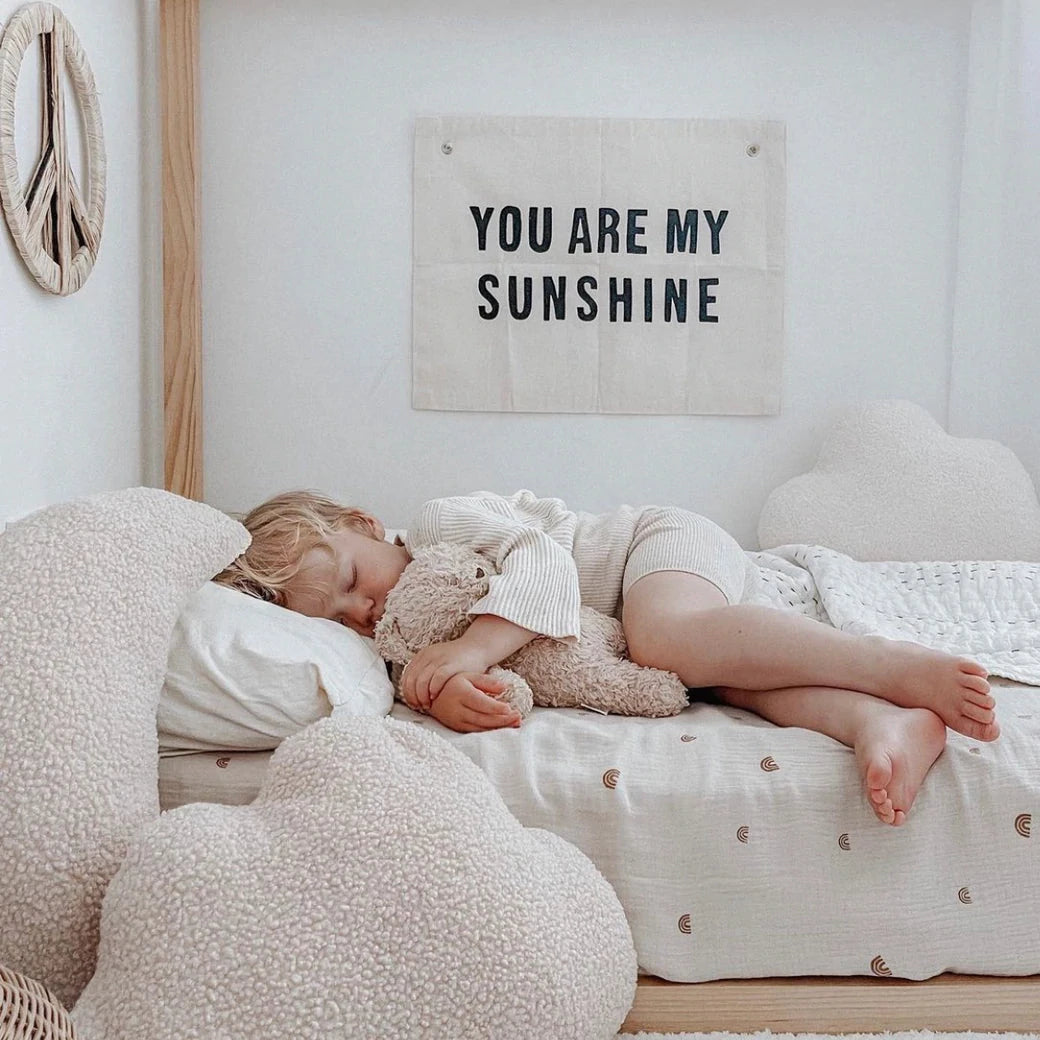 "You are my sunshine" banner sewn and screen printed by hand on natural cotton by Kenyan artisans.